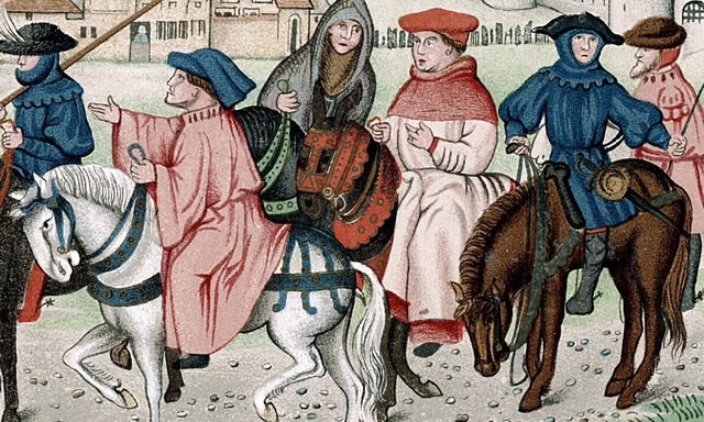 For those who never read The Canterbury Tales, they are a collection of twenty-four stories told by a diverse cast of characters making the 60-mile pilgrimage from London to the shrine of Saint Thomas Becket in Canterbury. The simple plot provides a framework for exploring the human condition through a series of stories told by the pilgrims in the form of chivalric romances, bawdy tales, moral allegories and sermons.